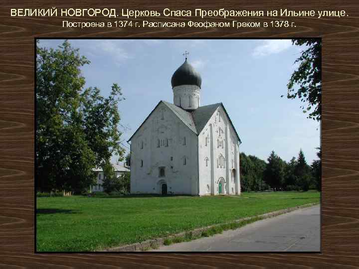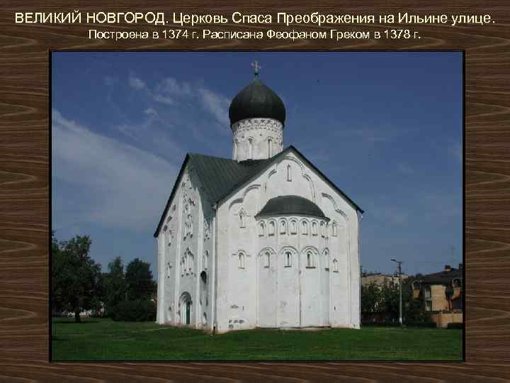 ВЕЛИКИЙ НОВГОРОД. Церковь Спаса Преображения на Ильине улице. Построена в 1374 г. Расписана Феофаном Греком в 1378 г.