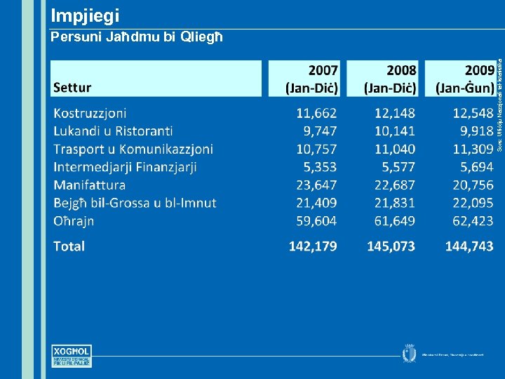 Ġenerazzjoni ta’ Impjiegi Sors: Uffiċċju Nazzjonali tal-Istatistika Setturi tal-Privat u Pubbliku