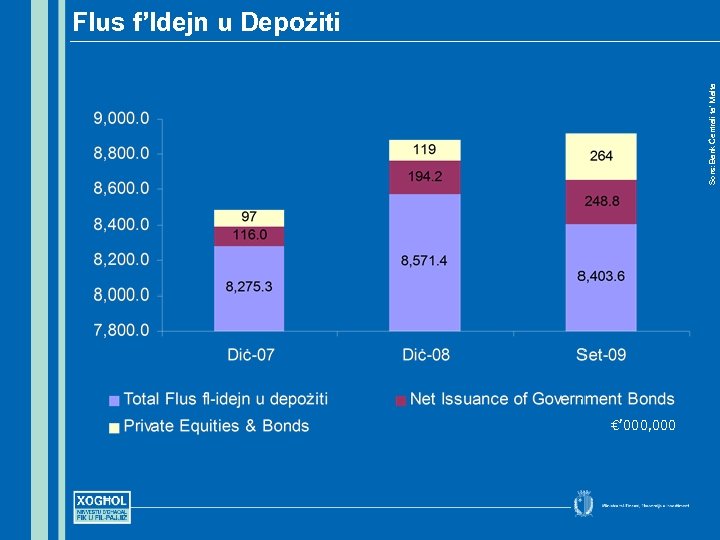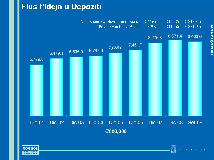 Net Issuance of Government Bonds € 116. 0 m € 194. 2 m € 248. 8 m Private Equities & Bonds € 97. 0 m € 119. 0 m € 264. 0 m Sors: Bank Ċentrali ta’ Malta Flus f’Idejn u Depożiti