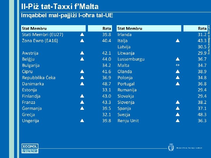 Il-Piż tat-Taxxi f’Malta Stati Membri 8 18 Sors: Kummissjoni Ewropea Imqabbel mal-pajjiżi l-oħra tal-UE