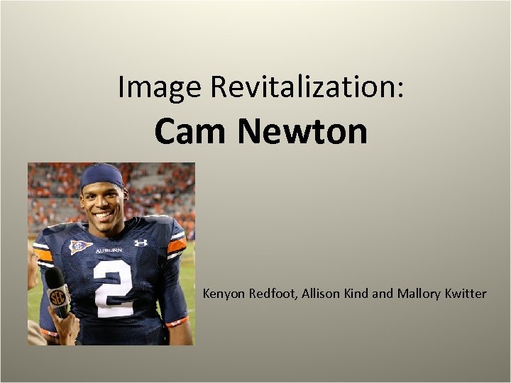 Image Revitalization: Cam Newton Kenyon Redfoot, Allison Kind and Mallory Kwitter