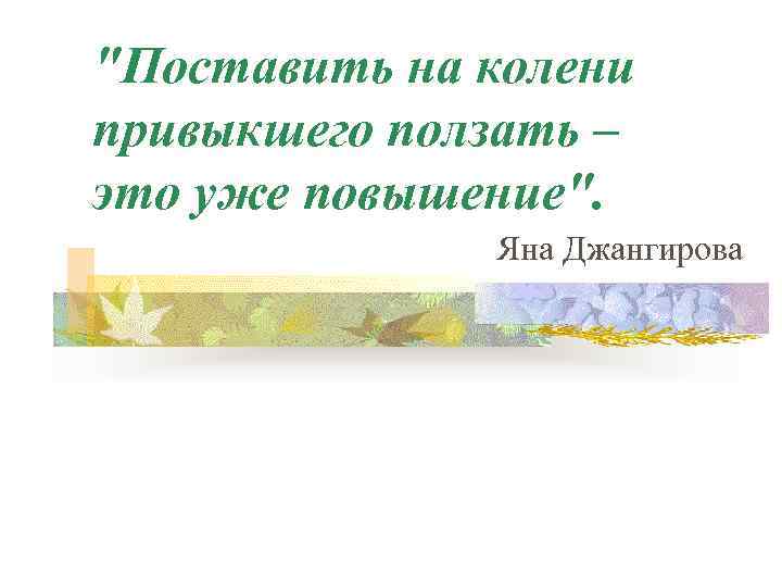 "Поставить на колени привыкшего ползать – это уже повышение". Яна Джангирова