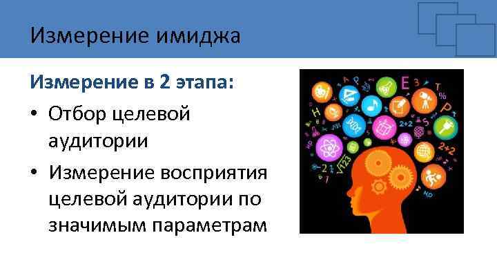Измерение имиджа Измерение в 2 этапа: • Отбор целевой аудитории • Измерение восприятия целевой аудитории по значимым параметрам