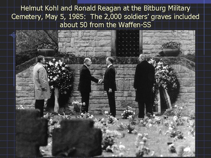 Helmut Kohl and Ronald Reagan at the Bitburg Military Cemetery, May 5, 1985: The 2, 000 soldiers’ graves included about 50 from the Waffen-SS
