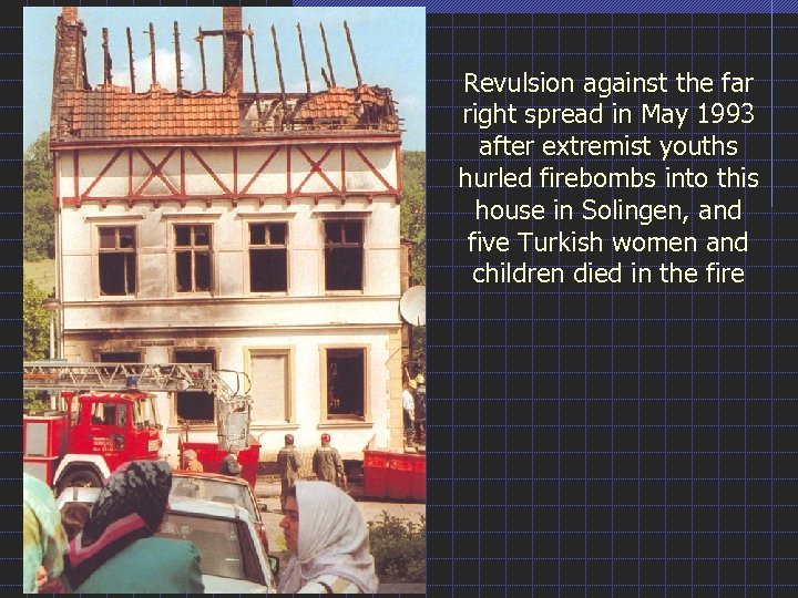Revulsion against the far right spread in May 1993 after extremist youths hurled firebombs into this house in Solingen, and five Turkish women and children died in the fire