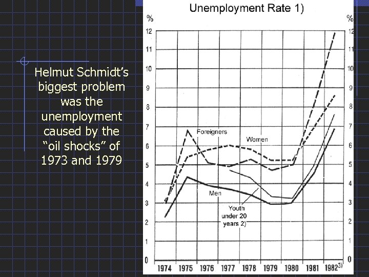 Helmut Schmidt’s biggest problem was the unemployment caused by the “oil shocks” of 1973 and 1979