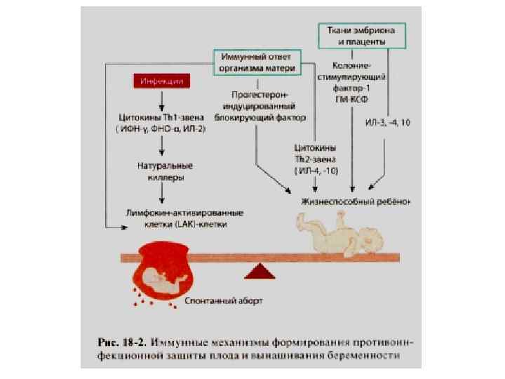 Некоторые случаи бесплодия невыясненного генеза и привычного невынашивания связаны с отсутствием продукции LIF (Leukemia Inhibitory Factor) эндометрием или его количественным дефицитом. Экпрессия Fas-лиганда на трофобластах. При взаимодействии с цитотоксическими лимфоцитами или NK идет запуск программы апоптоза лимфоцита.