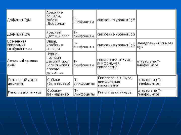 Первичные иммунодефициты Могут быть вызваны: n дефицитом кроветворной стволовой клетки n дефицитом системы Т-лимфоцитов n дефицитом системы В-лимфоцитов n селективными формами дефицита иммуноглобулинов n комбинированным иммунодефицитом n нарушением систем, функционально сопряженных с иммунной системой n дефектами системы комплемента