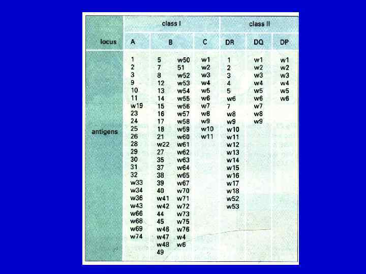 Некоторые типы HLA-антигенов и связанные с ними патологии Заболевание Аллель HLA Увеличение риска Ревматоидный артрит Герпетиформный дерматит Аутоимунный гепатит Целиакия Болезнь Шегрена Болезнь Аддисона Сахарный диабет 1 типа Синдром Гудпасчера Анкилозирующий спондилит Миастения (Myasthenia gravis) х – риск в здоровой популяции. Риск развития заболевания выше при наличии соответствующего аллеля, но развитие заболевания не обязательно. Данные для Европеоидной расы.