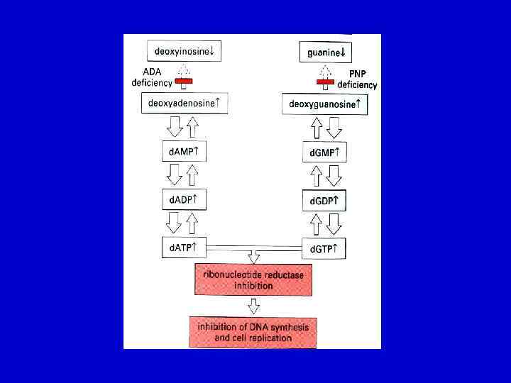 Костный мозг Плюрипотентная стволовая клетка Миелоидная стволовая клетка Лимфоидн ая стволовая клетка Недостаточность ADA Х-сцепленный SCID (γ-цепь цитокинов) Незрелая Тклетка Синдром Ди-Джорджи Х-сцепленная агаммгаглобулинем ия (ген Btk) Недостаточность MHC 2 типа Зрелая Тклетка Незрелая Вклетка Гипер-Ig. M синдром (CD 40 L) Зрелая Вклетка Упрощенная схема дифференцировки лимфоцитов и нарушения при различных первичных иммунодефицитах. ADA-аденозиндезаминаза; CD 40 L – лиганд CD 40; CVID – обычный вариабельный иммунодефицит; SCID – тяжелый комбинированный иммунодефицит