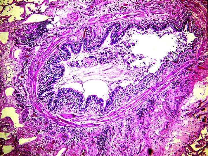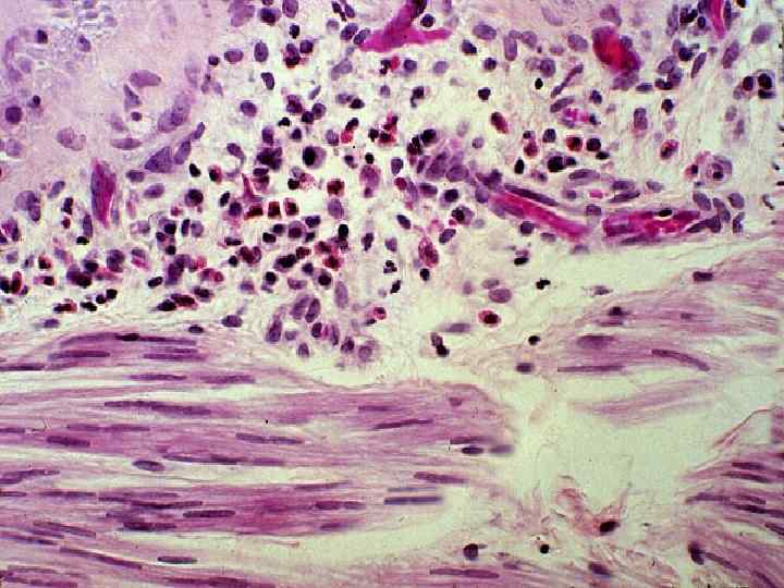Гиперчувствительность I типа Морфологические проявления ГНТ: • экссудативно-альтеративное воспаление (много эозинофилов в инфильтрате) • дилятация сосудов, повышение сосудистой проницаемости • спазм гладких мышц