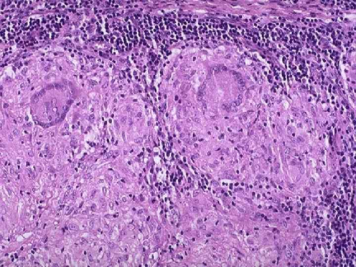 Гиперчувствительность IV типа Морфологические проявления ГЗТ: • продуктивное воспаление, часто с формированием гранулем. В инфильтрате преобладают лимфоциты, моноциты, макрофаги