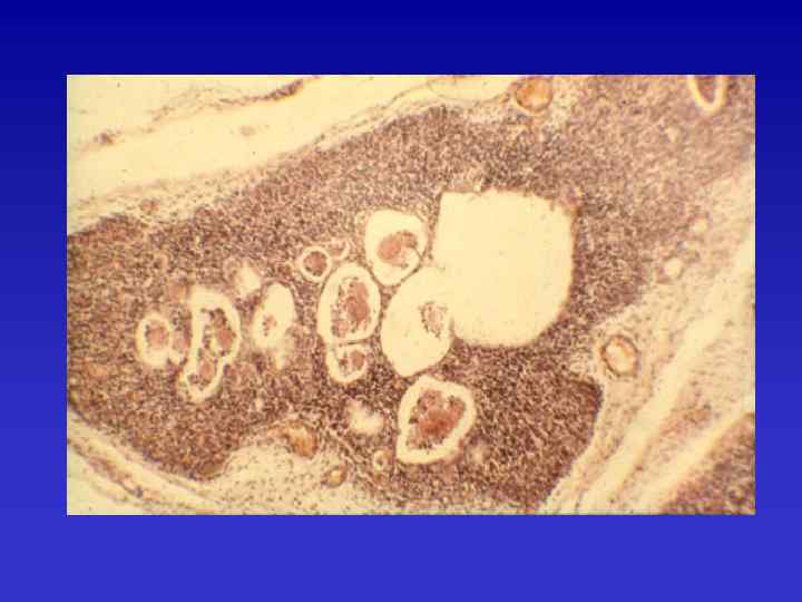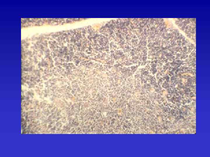 Морфология органов иммунитета при вторичных иммунодефицитах Тимус – формируется атрофия, соответствующая IV-V фазе АТЗТ (у детей). В периферических органах иммунитета – опустошение (делимфотизация) структурно-функциональных зон.