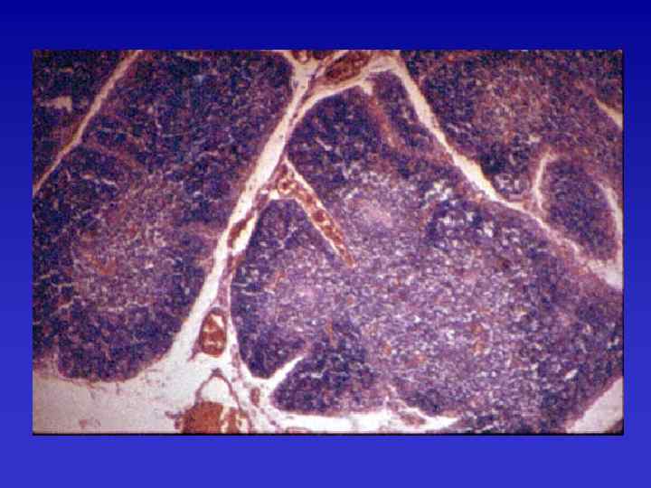 Комбинированные ИД • в раннем возрасте (до 3 мес) появляются молочница, пневмония, диарея, которые без лечения прогрессируют и приводят к летальному исходу до 2 -летнего возраста • выраженный дефицит В-кл. , Ig, Т-кл. • лимфопения • обычны оппортунистические инфекции • отсутствие рентгенологически выявляемого тимуса, аплазия л/у