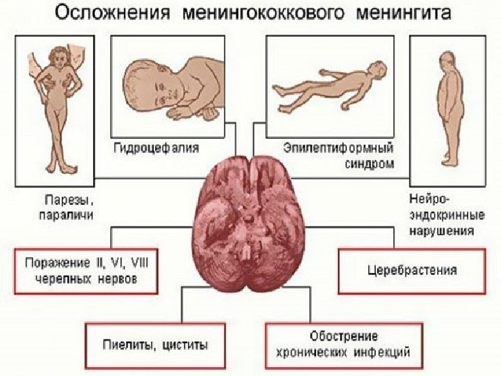 ИСХОДЫ МЕНИНГОКОККОВОЙ ИНФЕКЦИИ l l При отсутствии лечения менингококковая инфекция в 50% случаев заканчивается смертельным исходом. Но даже в случаях раннего диагностирования и надлежащего лечения 5 -10% пациентов умирают, как правило, через 24 -48 часов после появления симптомов от некупируемого острого отека и набухания головного мозга, инфекционнотоксического шока, острой надпочечниковой недостаточности.