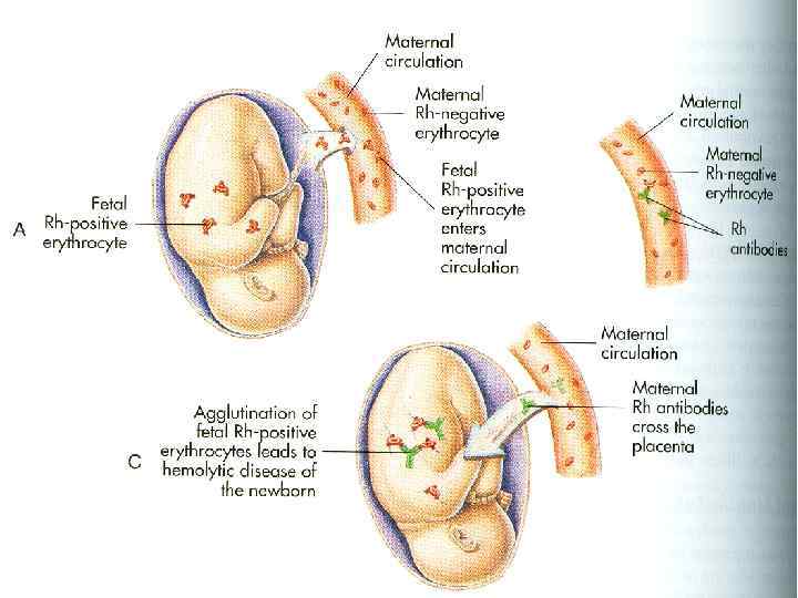 К резус-конфликтным ситуациям следует отнести: • повторное переливание Rh+ крови Rh- людям, • повторную беременность Rh-женщины Rh+плодом, • первое переливание Rh+крови Rh-женщинам, имевшим ранее беременность Rh+плодом, • первую беременность Rh-женщины Rh+плодом, если ей ранее переливали Rh+ кровь.