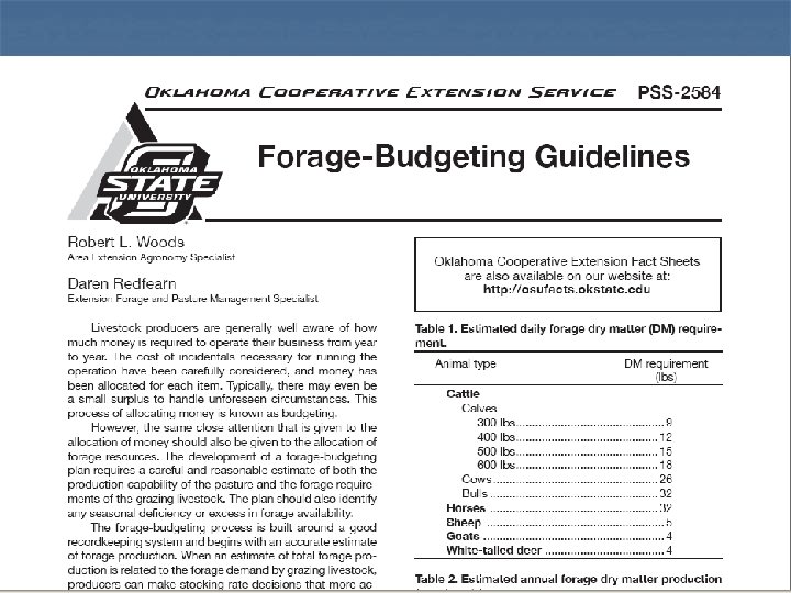 Forage Requirement for a Spring Calving herd under 4 different management options OSU Publication E-926