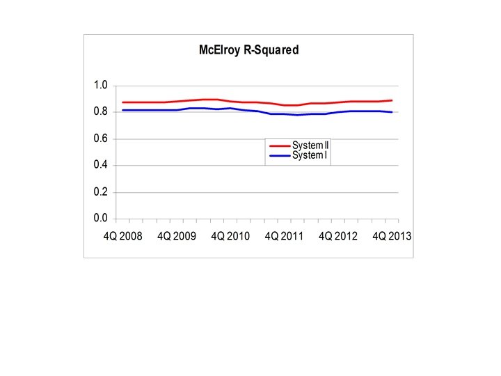 System I: Infl = const + log(ex rate) + log(GIR) + Inflationt-1 Inflation=0. 8* inflation(t-1) + error 99% confidence interval Inflation=1* inflation(t-1) + error