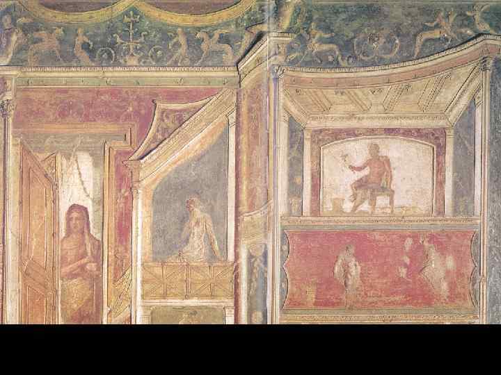 Помпейские росписи • 1 стиль – инкрустационный – кон. 2 – нач 1 в. до н. э. • 2 стиль – архитектурный – 100 -15 гг. до н. э. • 3 стиль – канделябрный – 15 г. до н. э. – 50 г. • 4 стиль – стиль фантастической архитектуры – 50 -79 гг.