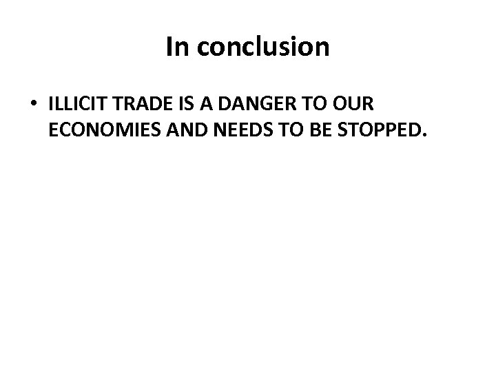 In conclusion • ILLICIT TRADE IS A DANGER TO OUR ECONOMIES AND NEEDS TO BE STOPPED.