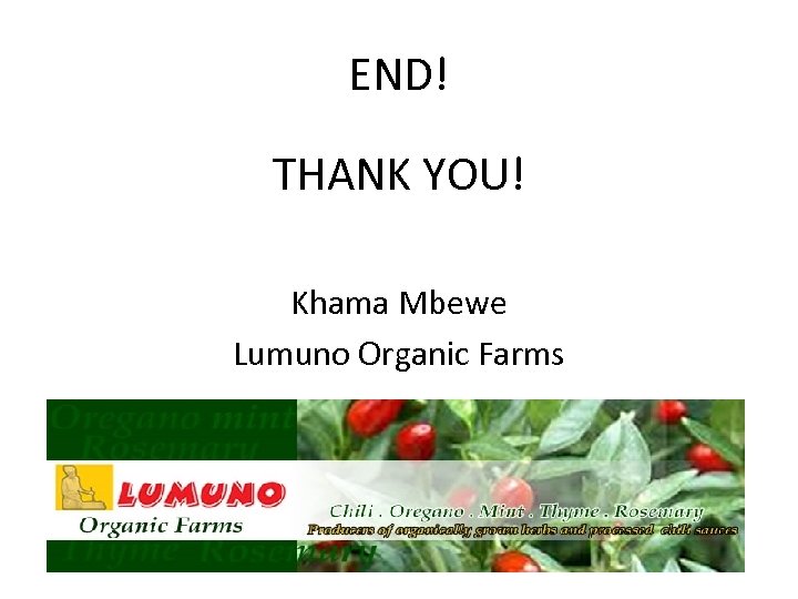END! THANK YOU! Khama Mbewe Lumuno Organic Farms