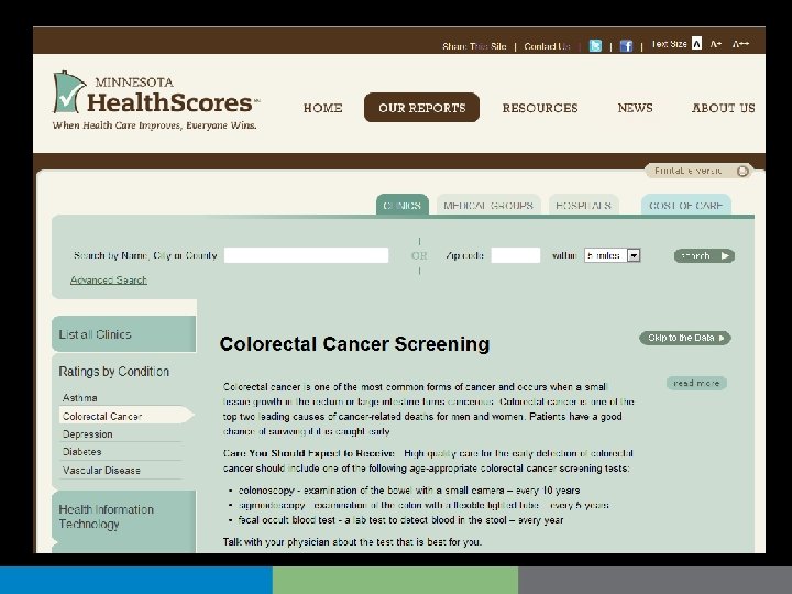 Improve Data Entry (cont. ) • Consider: – Is the information available to providers and staff that will be doing future screening? – Is the information available within the EHR to generate reminders? – Is the information available to report on overall clinic performance and queries of patients due for screening?