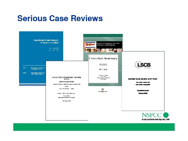 Common themes in SCRs of fatal and child maltreatment • • Family Characteristics Minority previously known to CSC The invisible child Failure to interpret the information Poor recording of information and decisions Decision making Relations with family Thresholds Sidebotham, P. , (2012) What do serious case review achieve? Arch Dis Child 97 (3): 189 -192