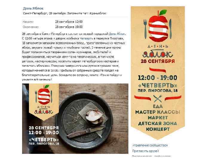 Во время события Репортаж Обратная связь Фотографии После события Информация про следующее событие Интересные благодарности со ссылками, партнеры Фотографии, видео, репортажи