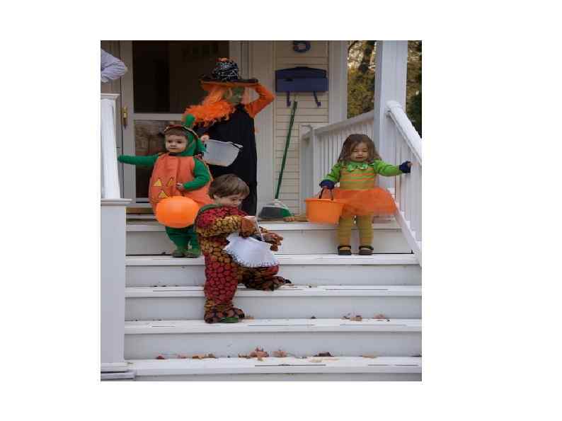 Halloween One of the most funniest and terrifying celebration in America. Halloween there are no presents, but mostly young kids go out and dress in costumes from house to house and say "Trick or Treat" in order to collect candies from them. They will dress like a ghost , a vampire, a devil or a witch. Children really love this day. Today children will take a little basket and will knock the door of their neighbour to receive their sweets as a little gift.