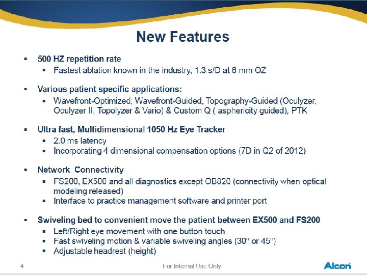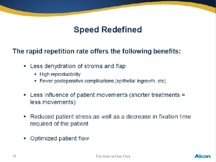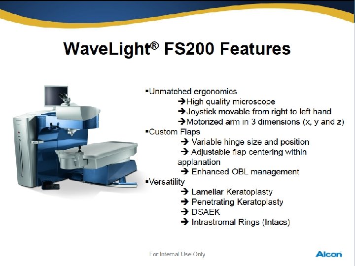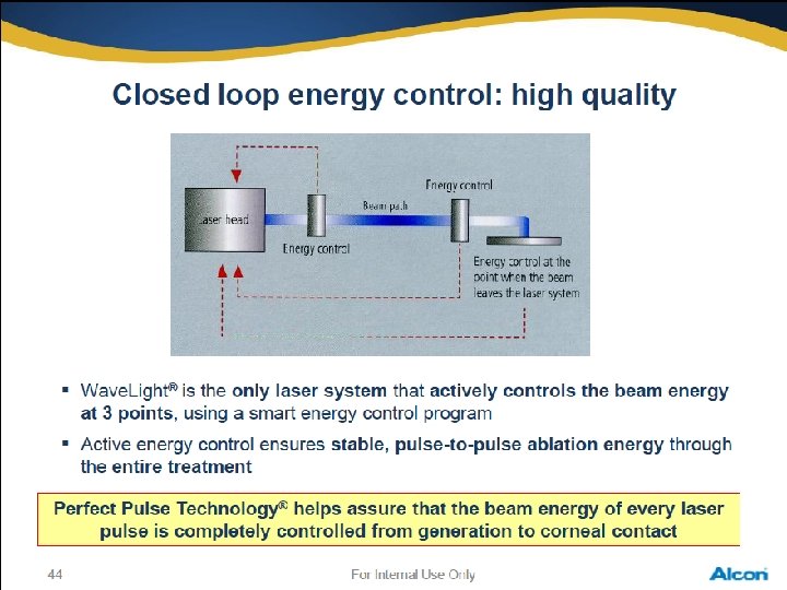 Safety Eye-tracker 1050 Hz, 2. 5 ms and multidimensional active video based eye-tracker tracks pupils from 1. 0 up to 8. 0 mm Energy stability Steady and reliable energy stability throughout the treatment due to the closed loop energy control and the enhanced sealed beam path Wave. Light® EX 500 now includes N 2 purging of laser head optics! Automatic energy calibration before every patient Energy calibration Convenient fluence test on PMMA once a day Eye alignment Integrated and advanced Eye Tracker alignment & cross line projector with the Wave. Light® EX 500 Cyclotorsion passive cyclotorsional alignment Pulse control Every laser pulse is controlled from its source till the point where it is applied to the cornea no uncontrolled ablation possible with Thermal impact Minimized thermal impact because by thermo neutral pulse distribution Every 5 th pulse is allowed to overlap 39