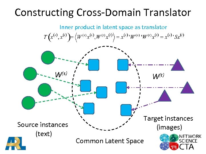 Constructing Cross-Domain Translator Inner product in latent space as translator W(s) Source instances (text) W(t) Target instances (images) Common Latent Space