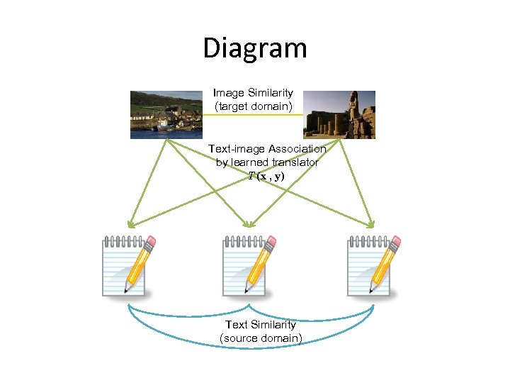 Diagram Image Similarity (target domain) Text-image Association by learned translator T (x , y) Text Similarity (source domain)