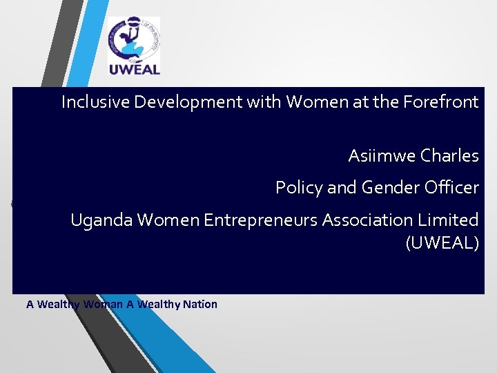 Inclusive Development with Women at the Forefront Asiimwe Charles Policy and Gender Officer Uganda Women Entrepreneurs Association Limited (UWEAL) A Wealthy Woman A Wealthy Nation