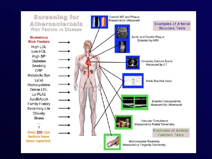 Future approach: the basis • Vulnerable patients do have vulnerable plaques • One may therefore assess the evidence for subclinical plaque disruption or… • Look for molecules, cells or extracellular matrix protein exposed by plaque disruption and…. • The degree of atherosclerotic burden