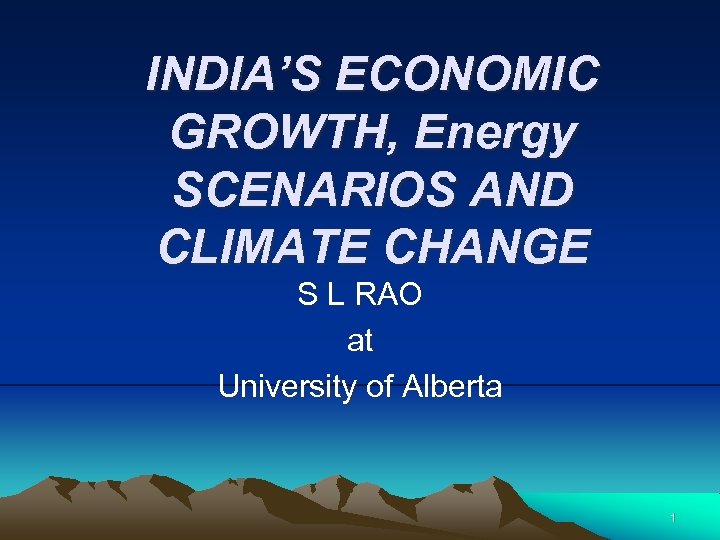 INDIA’S ECONOMIC GROWTH, Energy SCENARIOS AND CLIMATE CHANGE S L RAO at University of Alberta 1