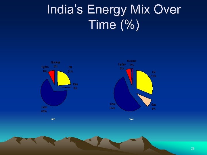 India’s Energy Mix Over Time (%) 1965 2001 21