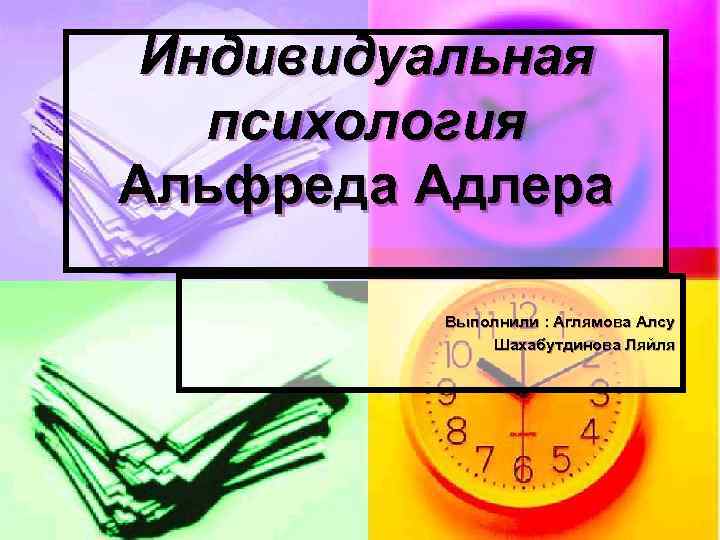 Индивидуальная психология Альфреда Адлера Выполнили : Аглямова Алсу Шахабутдинова Ляйля