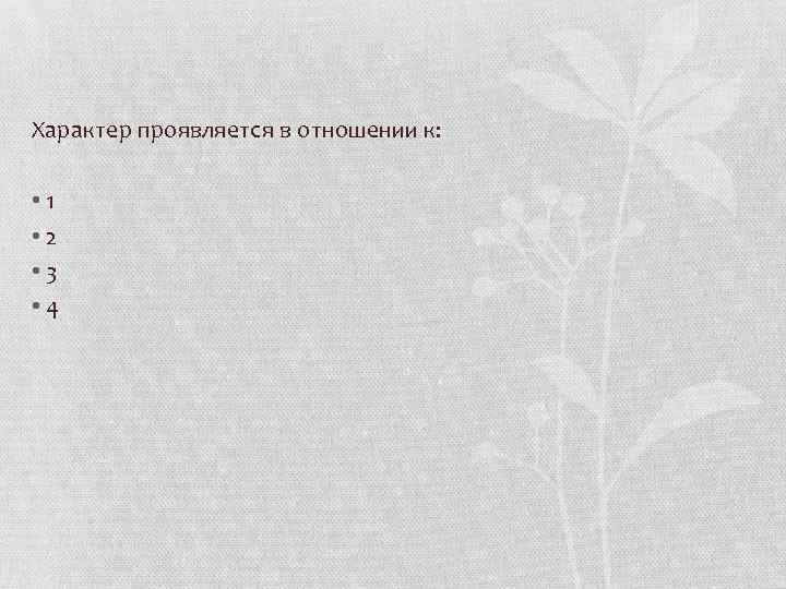 Характер проявляется в отношении к: • 1 • 2 • 3 • 4
