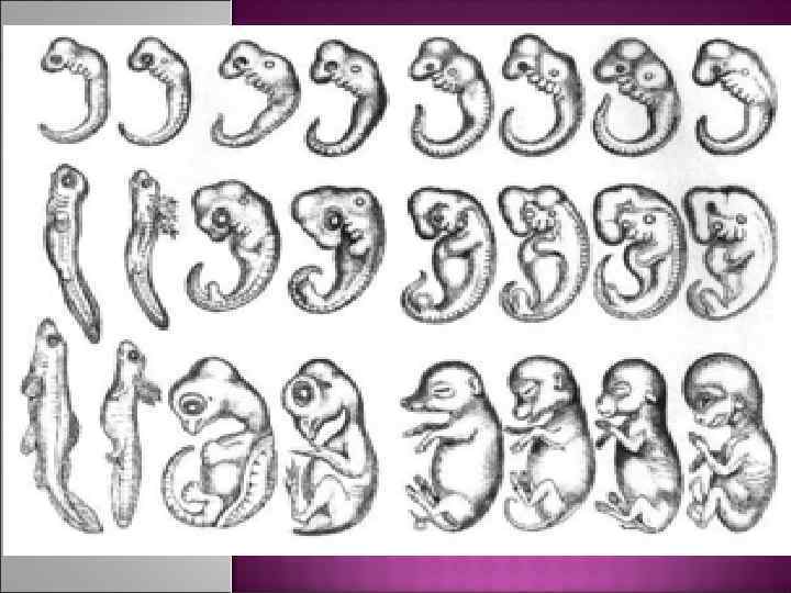 у большинства многоклеточных организмов независимо от сложности их организации зародыши проходят три одинаковые стадии, что говорит об общности происхождения.