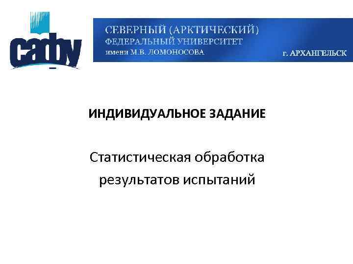 ИНДИВИДУАЛЬНОЕ ЗАДАНИЕ Статистическая обработка результатов испытаний