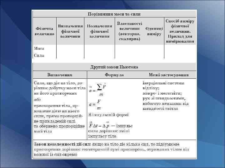 Розв’язання задач • На тіло 500 г одночасно діють дві сили 10 Н та 2 Н, напрямлені в протилежному напрямку вздовж однієї прямої. Визначте модуль та напрямок прискорення. • Координата тіла змінюється за законом x = 10+3 t +2 t 2 під дією сили 60 Н. Знайдіть масу тіла. • Сила 50 Н надає тілу прискорення 0, 5 м/с2. Яка сила надасть цьому самому тілу прискорення 2 м/с2 ?