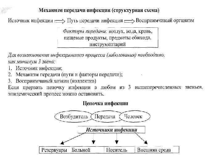 Общая (генерализованная) форма инфекции Носительство Реинфекция Разновидность инфекционного процесса, характеризующаяся наличием явных клинических признаков системности поражения Длительное существование (персистирование) патогенных или условно патогенных микроорганизмов в тканях или органах макроорганизма, не приводящее к развитию инфекционного процесса Повторное инфекционное заболевание, развивающееся в результате воздействия того же возбудителя Реинфекция, развивающаяся ещё до ликвидации первичной болезни Суперинфекция Инфекционный процесс составляет сущность инфекционной болезни. Собственно инфекционная болезнь это крайняя степень развития инфекционного процесса. Для правильной организации профилактических мер и контроля важно понимать сущность инфекционного процесса. Все инфекционные болезни являются следствием последовательных событий. Зачастую резервуар возбудителя (агента), вызвавшего вспышку инфекции, обнаруживается не сразу, а в некоторых случаях совсем не обнаруживается. Однако, если инфекционный процесс хорошо изучен, можно использовать эффективные меры контроля, обеспечивающие инфекционную безопасность лечебных учреждений даже в тех случаях, когда источник (резервуар) возбудителя болезни неизвестен.