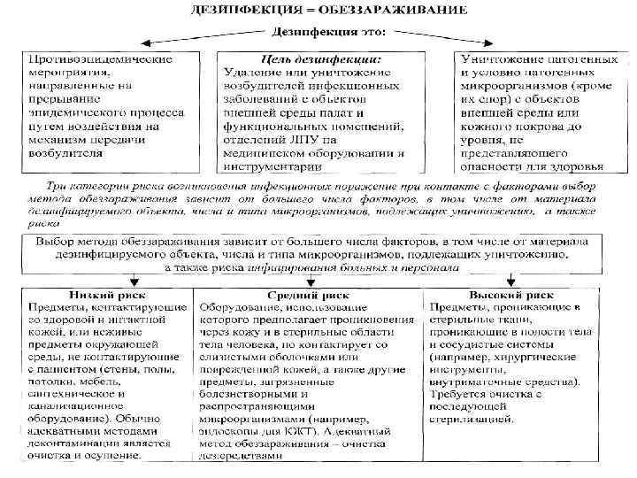 ДЕЗИНФЕКЦИЯ это уничтожение патогенных организмов: бактерий, вирусов, риккетсий, простейших, грибов и их токсинов. Цель дезинфекции прервать пути передачи заразного материала. Виды дезинфекции профилактическая, очаговая. Профилактическая проводится постоянно независимо от наличия или отсутствия внутрибольничной инфекции. Очаговая проводится при ИСМП и делится на текущую и заключительную. Текущая проводится систематически весь период нахождения инфекционного больного в стационаре. Проводится многократно. Цель текущей дезинфекции предупредить распространение ИСМП. Заключительная осуществляется в очаге после удаления источника заразного начала (госпитализация, выздоровление, смерть). Цель заключительной дезинфекции уничтожение возбудителя.
