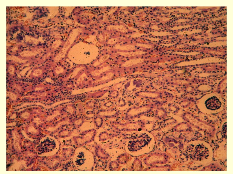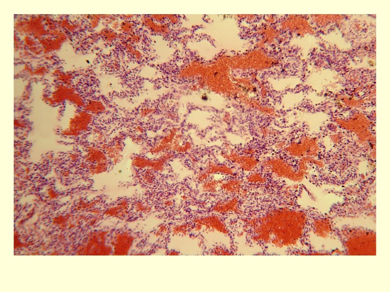 Парагрипп дистрофия, некроз, десквамация пролиферация эпителия мелких бронхов – подушкообразные разрастания мелких бронхов, бронхиол 1.катаральный ларинготрахеобронхит 2.серозно-десквамативная очаговая пневмония иногда - гиалиновые мембраны в легких 3.внелегочные поражения: в эпителии почек, тонкой кишки, поджелудочной железы
