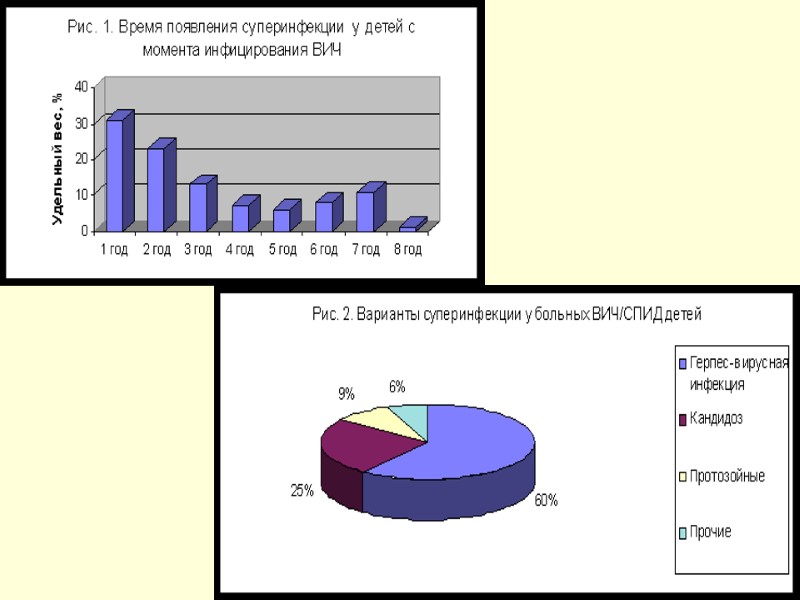 Особенности ВИЧ-инфекции у детей частота инфицирования детей, рожденных от ВИЧ-инфицированных матерей - 50% серологическая диагностика СПИД развивается быстро - через 6 -12 месяцев после рождения, болезнь протекает тяжело раннее развитие В-иммунонодефицита по сравнению с Т-дефектами – тяжелые рецидивирующие бактериальные инфекции эмбрио- и фетопатии лимфоцитарная интерстициальная пневмония поражения ЦНС (нейро-СПИД) паротиты - небактериальное воспалительное поражение околоушных желез