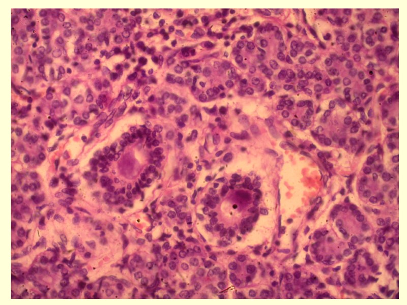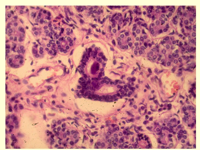 РС-инфекция: Ларинготрахеобронхит Некротический бронхиолит Мелкоочаговые пневмонии Генерализация инфекции: внелегочные поражения кишечника, печени, поджелудочной железы, почек и др. Первичное поражение нижних дыхательных путей: Сосочковые структуры в просвете мелких бронхов. Слияние эпителиоцитов и формирование синцития