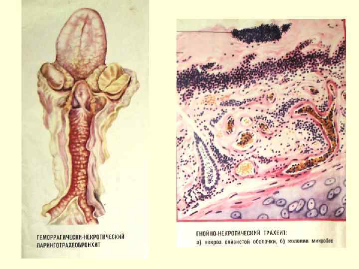 Грипп: инъекция слизистых оболочек зева и энантема фибринозно-некротический трахеит