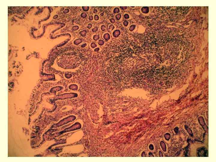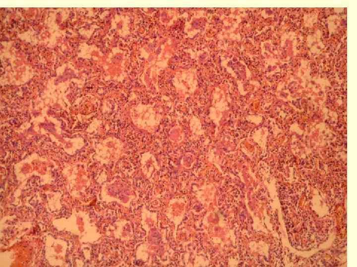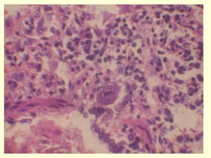 • РС-инфекция: 1. 2. Ларинготрахеобронхит Некротический бронхиолит Мелкоочаговые пневмонии Генерализация инфекции: внелегочные поражения кишечника, печени, поджелудочной железы, почек и др. Первичное поражение нижних дыхательных путей: Сосочковые структуры в просвете мелких бронхов. Слияние эпителиоцитов и формирование синцития 3. 4. • •