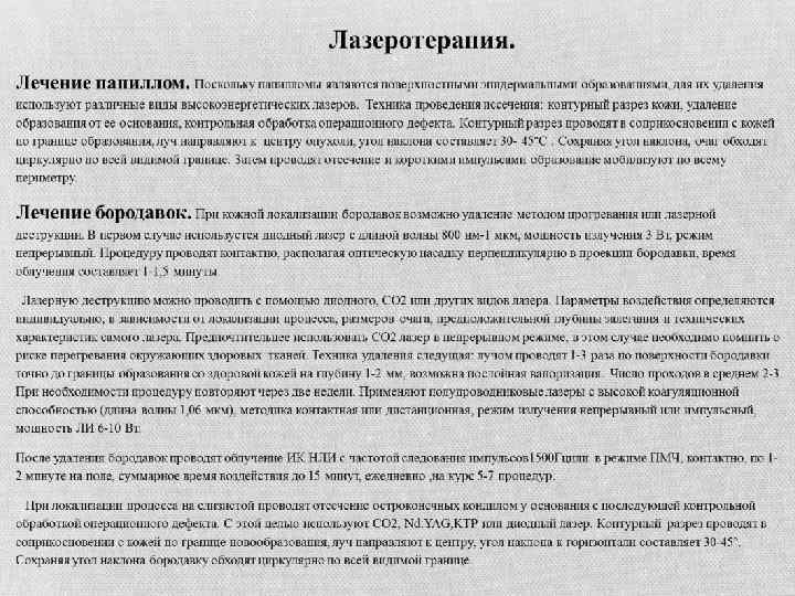Методы лечения в условиях косметологического кабинета. 1. Хирургические (деструктивные): Кюретаж; Электрокоагуляция; Криодеструкция; Лазерная хирургия. 2. Использование химических препаратов с прижигающим или цитостатическим действием. 3. Комбинированные методы лечения.