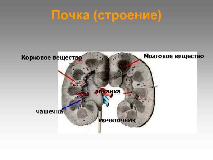 Почка (строение) Корковое вещество Мозговое вещество лоханка чашечка мочеточник